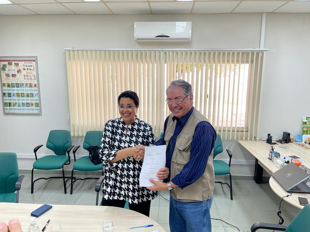 A Moscamed recebeu neste dia 11/07/2022 a Diretora Geral Adjunta da Agência Internacional de Energia Atômica (AIEA), Najat Mokhtar, e o Chefe Geral do Departamento de Cooperação Técnica, Raul Ramirez. A visita técnica teve como objetivo a assinatura do termo de recondução do Centro de Colaboração para auxiliar a AIEA na implementação de atividades no campo de Programas Operacionais Contra Mosquitos _Aedes aegypti_, utilizando a Técnica de Inseto Estéril (TIE). Durante o evento também houve a entrega oficial de um irradiador e uma liberação demonstrativa de machos estéreis no distrito de Carnaíba da cidade de Juazeiro. Participaram da cerimônia também Rodrigo Said – consultor nacional da Organização Pan-Americana da Saúde (OPAS/OMS); Rogério Felipe Lins Barbosa – Diretor de Gestão Institucional da Comissão Nacional de Energia Nuclear (CNEN) e Fernando Costa – Secretário de Saúde do Município de Juazeiro/BA.